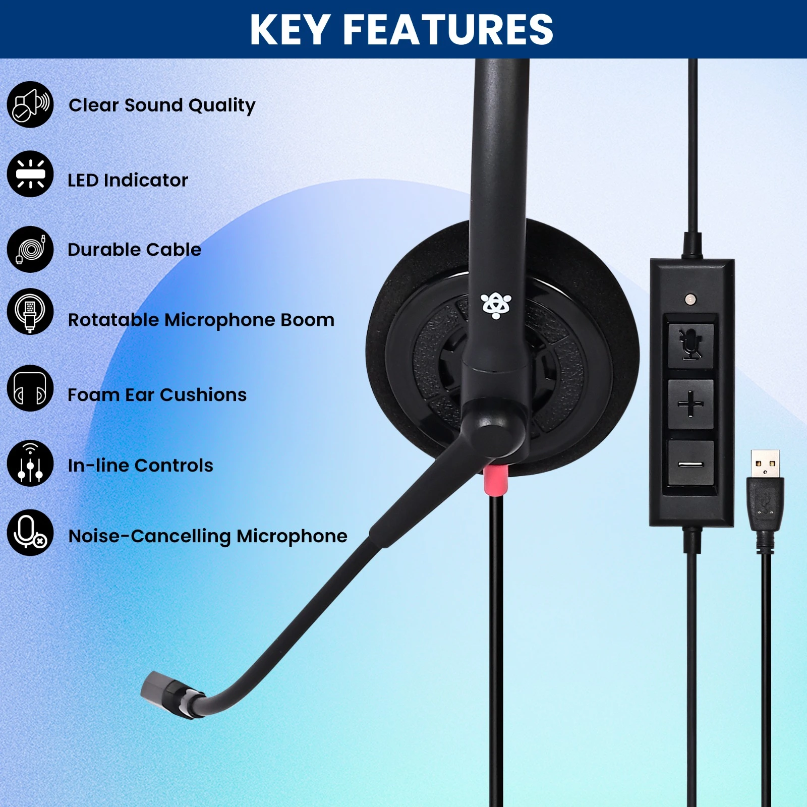 • Headphone with Noise-Cancelling Mic: Eliminates background noise for clear and professional communication in any environment.